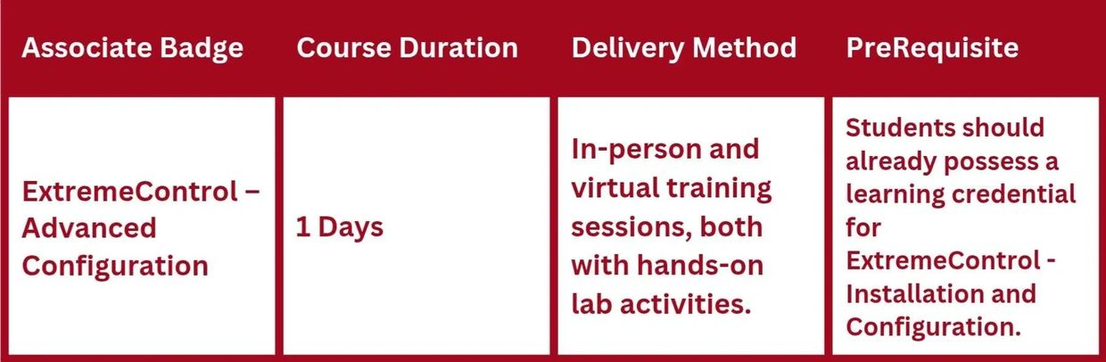 This course is designed for individuals needing network access control automations and notifications and/or are responsible for the ExtremeControl Portal.