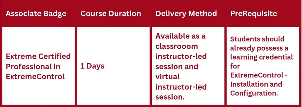 On passing this assessment you will become an Extreme Certified Professional in ExtremeControl.